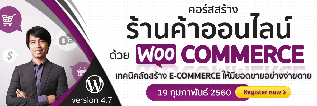โปรแกรมที่สอน : WordPress 4.2+ Plugin WooCommerce